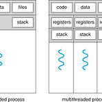 1. 개요 Thread는 CPU 이용의 기본 단위이다. thread는 ID, program counter, set of registers, stack으로 구성된다. thread는 한 process 안에 여러개 존재할 수 있으며, 같은 process에 존재하는 다른 thread들과 OS의 자원을 공유한다. 아래 그림 1은 single thread process와 multi thread process의 차이를 보여준다. 위 그림과 같이 thread들은 code, file, data 등을 공유하지만 register와 stack은 각각 가지고 있다. 1.1 MotivationProcess는 여러 개의 독립된 작업들이 필요할 때 thread가 필요하다. 그림 1에서 봤듯이 thread는 여러 자원을 공유함으로써 ..
